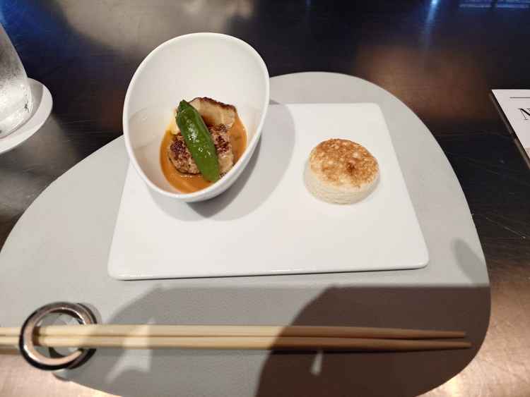 フォアグラを試食。こだわりのソースがとても美味しかった。