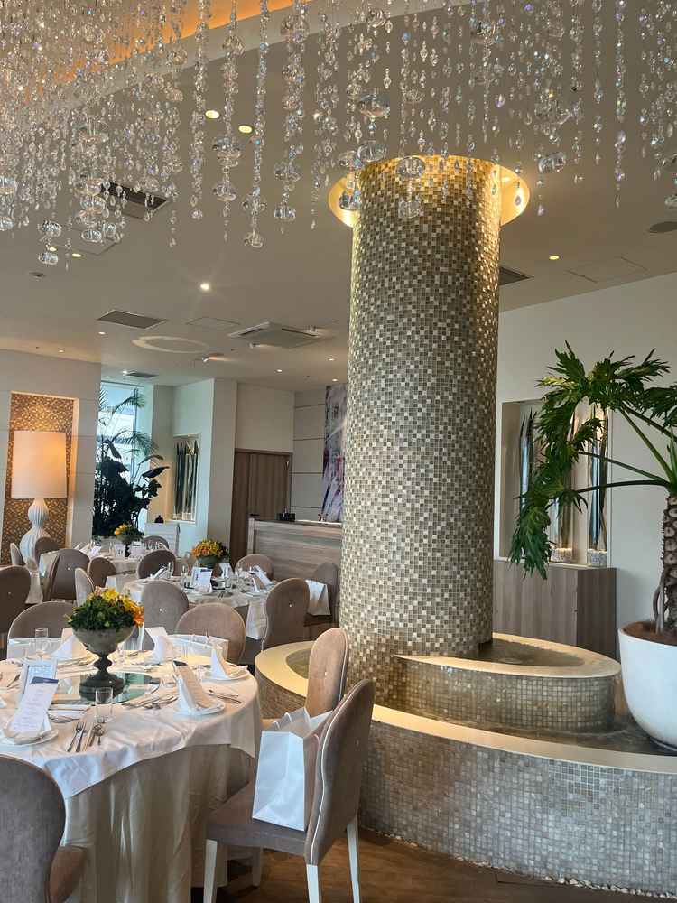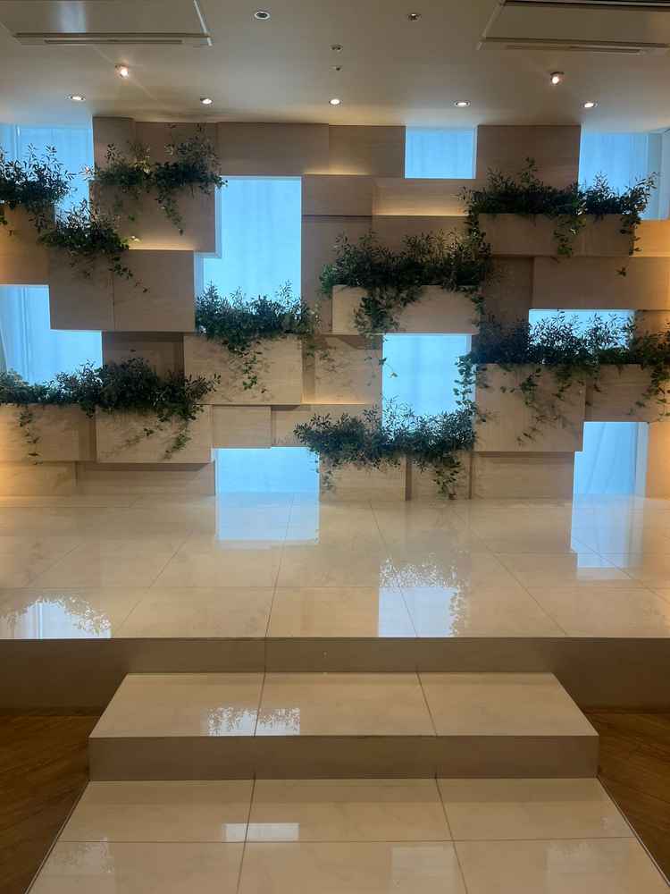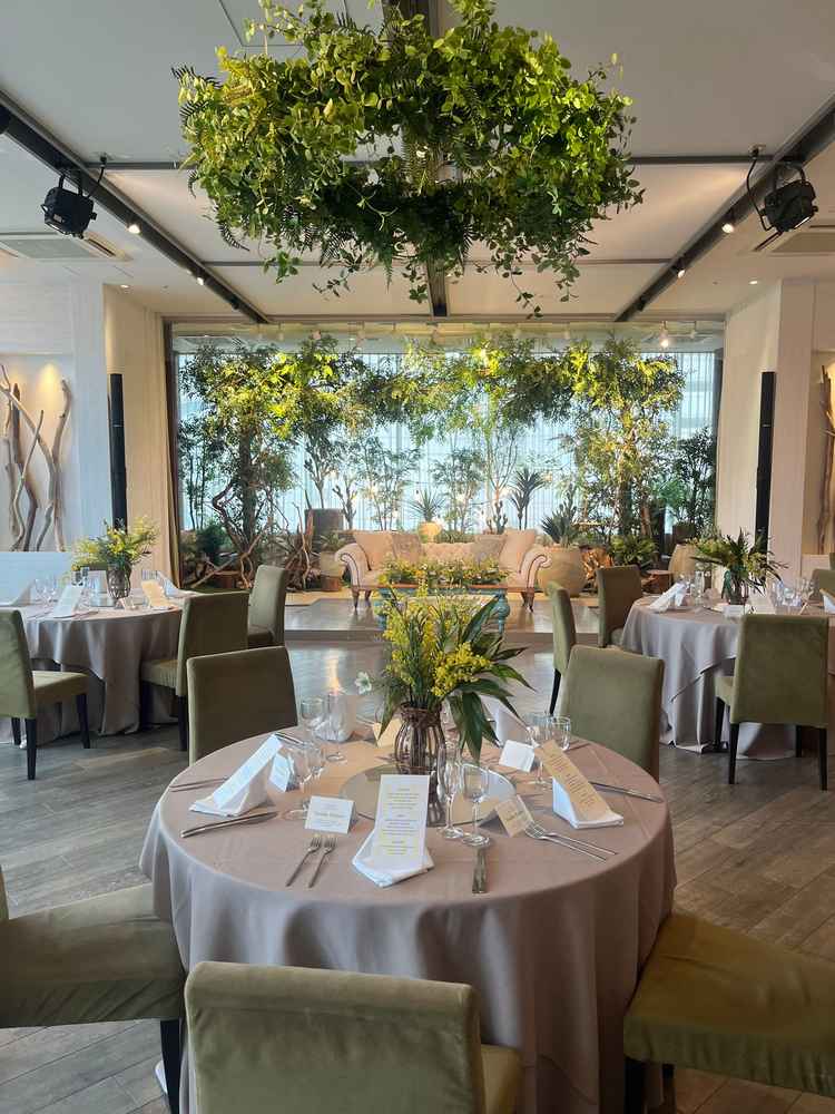会場の中に水が流れていたり、キラキラしたシャンデリアがあるのがとても気に入りました。 ナチュラルで素敵な雰囲気でした