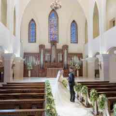 光輝くステンドグラスが印象的な大聖堂で、感動の挙式シーンをご体験。