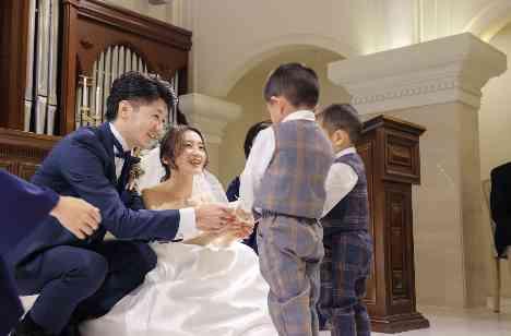 本当に今から?と思うほど最初は実感が湧いていませんでしたが、着替えてリハを進めていくうちにどんどん緊張感が増していきました。挙式までの流れはあっという間。リハの内容もほとんど覚えてなく、後からともっとこうしたらよかったなという点が。。。ただ両親やゲストの皆が笑顔で見てくれていたことは鮮明に覚えています。リングボーイの甥っ子兄弟にもほっこりして緊張も徐々に解け自分たちも笑顔で終えることが出来ました!