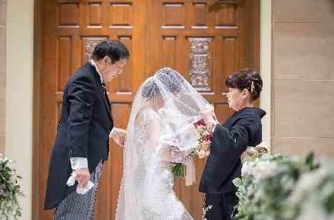 チャペルの祭壇からはゲストの顔がしっかり見えました。コロナ禍で中々会えず数年ぶりの方もいたこともあり、自然と笑顔・涙がこみ上げてきました。緊張はしていたけど、それよりもみんなの顔を見れて安心感に包まれました。また、エスコートしてくれた父、ベールダウンしてくれた母と並んだ瞬間の写真が皆笑っていて、今見返してもとても幸せな気持ちになります。