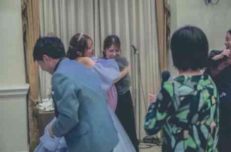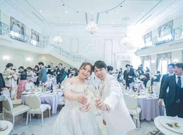 披露宴の余興では、ゲスト全員で楽しめるクイズ大会を開催。スクリーンに映し出される問題に、会場は一体となって大盛り上がりとなりました。さらに、正解は発表の瞬間には風船割りの演出もご用意。色とりどりの風船が弾けるたびに歓声と笑い声が広がり、会場の熱気は最高潮に。どの世代のゲストも自然と笑顔になり、ふたりらしい遊び心あふれるひとときとなりました。参加する楽しさと驚きが詰まった心に残る余興になりました。