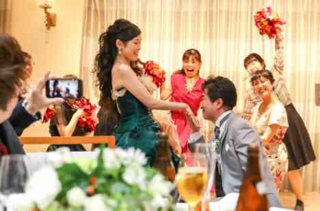 披露宴というよりもパーティのイメージを持たれたお2人。かしこまった雰囲気ではなくて、つねにゲストの笑顔が見たいという希望が存分に出た披露宴パーティでした、あまりしっとりとした演出ではなく、ゲストが見ていて楽しめるような余興を行いました。