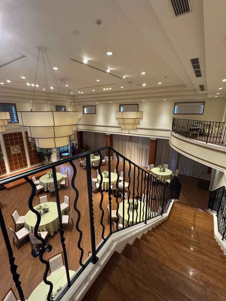 アンティーク調の落ち着いた挙式会場でしたが、挙式会場外の大階段は豪華でした。 披露宴会場は2会場見学しましたが、両会場ともに階段と庭がついており、広々使うことができて様々な演出ができます。 会場雰囲気は、木目調のナチュラル、白基調のクラシカルな印象で好みにあわせて選ぶことができます。