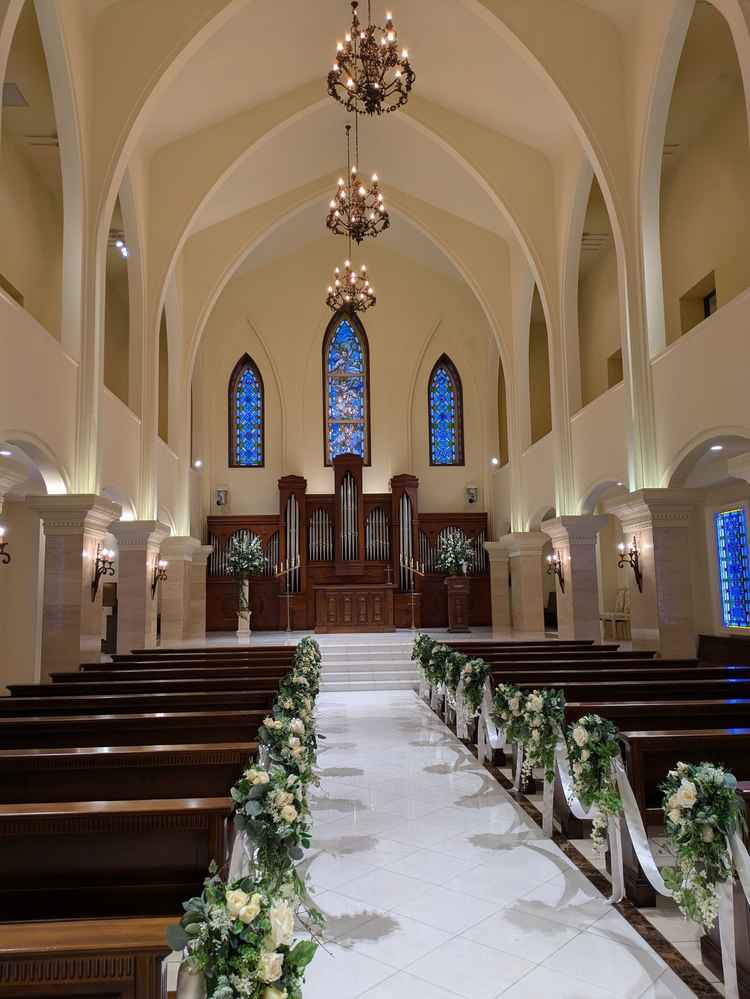 福岡では珍しい大聖堂のチャペルがとても厳かな雰囲気で素敵でした。 ガーデンの夜のライトアップもとても綺麗で写真をいっぱい撮りたくなりました。