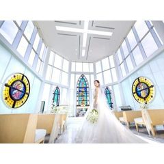 青空の見えるガラスキューブのチャペルで入場体験!親子3人で歩める2.5m幅のバージンロードは必見!空と光が彩る開放的な空間で、感謝を伝える感動のシーンを本番さながらに体感してください。