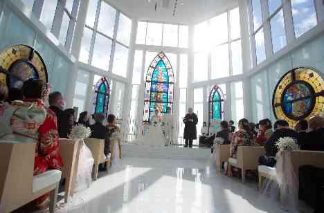 生演奏と聖歌隊の歌声の中入場し、緊張ももちろんありましたが上質な挙式の中でゲストからの祝福を感じることができました。 また、挙式中の歌のサビの部分で太陽の光が差し込み私たちだけが照らされ、とても神秘的で感動しました。周りに大きな建物が無いこのチャペルでしか味わえない瞬間だったのでとても思い出に残っています。