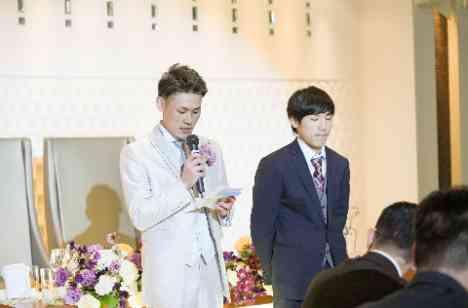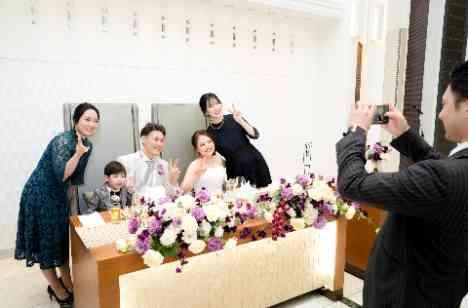 せっかく集まっていただいた皆様にはお食事をゆっくり楽しんでいただきたい、写真撮影も時間を気にせず楽しみたいという想いから歓談メインのタイムスケジュールを組みました。高砂席にお集まりいただいたり、各自ご挨拶に回られたり、ゲスト皆様も自由にリラックスしてお過ごしいただけているようでした。ご友人によるご余興やスピーチでは、笑いあり涙ありで盛り上げていただき、より思い出深い披露宴となりました。
