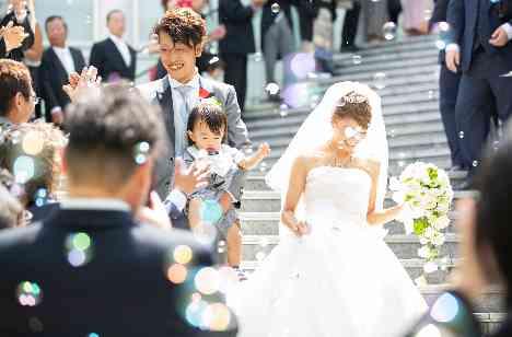 当日は天候にも恵まれ、青空が広がる中での挙式となりました。 暑い中ではありましたが外での開放感にゲストの皆様も自然と笑顔になり挙式の際は感動に、ガーデンセレモニーでは盛り上がりました。 おふたりのお子様も良い子にされており皆様も感心されてました。