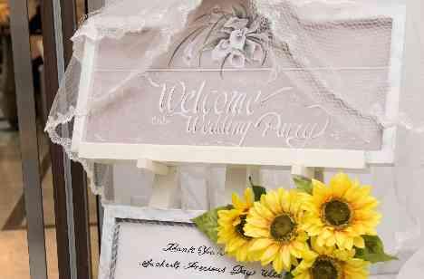 パーティ会場はすごく綺麗で天井も高くコーディネートも可愛い感じになってすごく満足されておりました。 入場ではせっかく天気もいいのでガーデンからの入場でおこなったのですが、白いロールカーテンが上がった時にはゲストの方の興奮もすごいものでした。