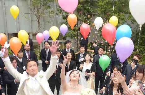 挙式後は、チャペル前の大階段を歩むお二人をゲストの皆様のフラワーシャワーで祝福。 最後には、新郎新婦様の掛け声で、大空に舞い上がるバルーンリリース! 皆様にとって忘れることの出来ない美しい思い出となりました。