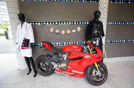 ラウンジの入り口にウエルカムグッズとして、新郎様は趣味の剣道着を着せたマネキンを、新婦様は職場の制服を着せたマネキンにお気に入りのアーティストのライブグッズを身に着けさせてそれぞれ飾りました。 新郎様は、愛車のバイクも飾り、お開き後には、バイクにまたがりお写真を撮影されていました。