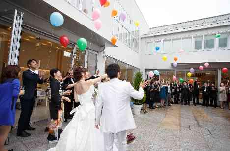 当日はあいにくの空模様の中で、挙式後にバルーンリリースが出来なかった為、披露宴中の雨が上がったタイミングで、新郎新婦様はじめゲストの皆様にガーデンに出て頂き、バルーンリリースを行いました。 バルーンが空に舞い上がると、祝福の拍手が起こり、お二人の演出をしたいとゆう強い願いが叶った瞬間でした。