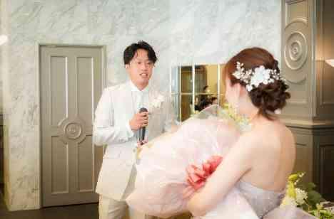 新郎様から花束と感謝の気持ちを贈りたい。 と、ご相談を受け 新婦様に内緒でプランナーとフローリストと 感謝と愛のこもったメッセージと 新婦様の大好きな思い出のお花・・・ ひまわりの花束をプレゼント。 普段は、少し恥ずかしくて伝えられない 新郎様からの想いが伝わり新婦様も感動で涙を流されていました。