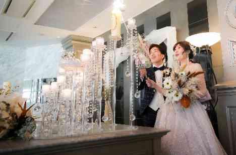 ゲストの皆様と近くで触れ合える演出を強く希望されていた新婦様。 キャンドルサービスは新郎新婦がゲストのテーブルを回ってあかりを灯し、最後にメインキャンドルへ点火する演出。キャンドルのあかりは幸せを運ぶと言われており キャンドルサービスにはゲストの皆様への感謝や、新郎新婦様が光溢れる日々を送れるようにとの意味が込められています。 ゲスト様との距離もグッと近くなり皆様の笑顔がこぼれます。