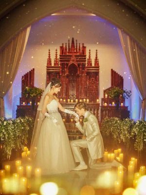 バージンロードを一歩ずつ進むたびに、花嫁にスポットライトがあたる照明演出。厳粛なチャペルの中、真っ白な大理石のバージンロード上で、ゲストも息を呑むような印象深い入場シーンとなることでしょう。