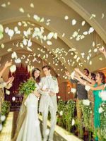 感動の挙式シーンの最後は、フラワーシャワーで彩りを添えて。花の香りによって辺りを清め、幸せを妬む悪魔から二人を守る…ゲストからのそんな想いとともに舞うフラワーの様子はまた格別です。