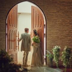 【星空のもとでロマンチックなセレモニーが叶う】天井高8m、ホワイトローズが縁取る15mにも及ぶバージンロード、木彫りの祭壇と壮大なチャペルを体験!どこを背景にしても画になる一枚が撮れる。