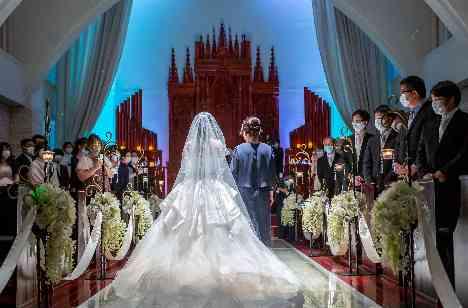 ご見学時にお気に召していただけた理由のひとつ。《星空のチャペル》広大なチャペルでは全面星空の光演出が可能です★迫力のある演出にゲストも驚き!扉からは素敵な新婦様の姿が現れ、とても幻想的な空間となりました♪挙式後にはゲストの皆様とのアフターセレモニー!晴天の中新婦様からのブーケプルズや、新郎様からは男性限定でグッズプルズを行いました!
