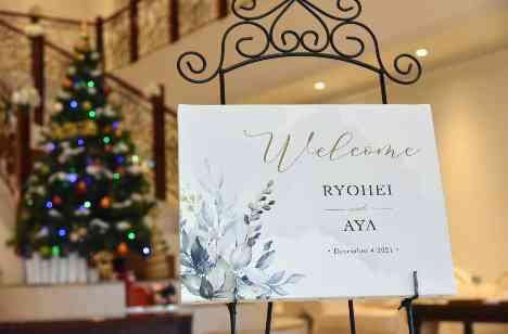 まずゲストの皆様がご来館された際にお待ちいただく お待合ロビー。12月のご結婚式にぴったりのくっりすますツリーとお二人オリジナルのウェルカムボードやグッツをおいてゲストの皆様をお迎えします! 当館の貸し切りを生かしたお二人らしい空間にしていただきゲストのみな様もお楽しみいただきながらお待ちいただくことが出来ました!