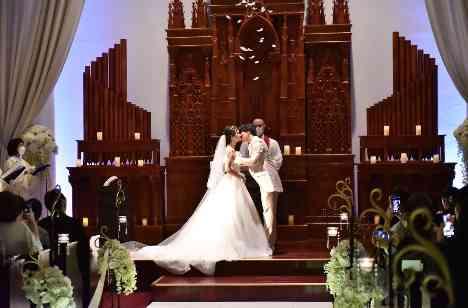 当館人気のオリジナルセレモニー「フェザースコール」 ウェディングキスのタイミングでお二人に向けて降り注ぐロマンティックな演出です♡まさかフェザーが降ってくるなんてゲストの皆様も想像していなかったのでびっくりされているゲスト様ばかりでした。 幻想的なお写真が残せるのはもちろん、お二人のみならずゲストの皆様の記憶にも残る素敵な挙式演出のシーンとなりました!