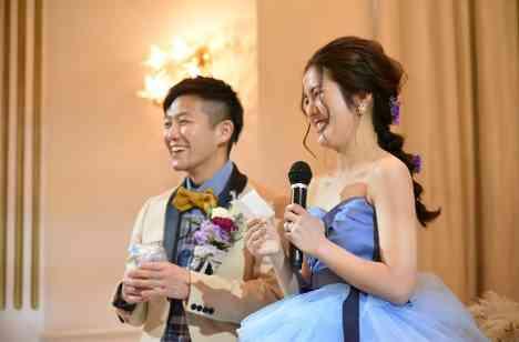 結婚式の日程変更を経て、新しいデザインのドレスも登場したいたことから、ドレスを再度見直した新婦様!たくさん迷われましたが、とってもお似合いなブルーのドレスにご決定!新郎様もドレスに合わせてデニムシャツにお召し変え♡ 何色のドレスにお色直しされるかご投票いただき、新郎新婦様からの抽選で当選者を発表されました♪ゲストも楽しめる演出となりました♡
