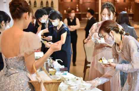 お色直し入場後、お越しいただいたゲストへのプレゼントとしてロビーにてシェフ特製のデザートビュッフェとお茶漬けビュッフェをご用意★季節のデザートから定番のデザート、様々なお茶漬けを小さなお子様からご年配の方でもお召し上がれるメニューを揃えました♪サービススタッフが取り分けのサポートをさせていただき、ゲストもおふたりのおもてなしにご満足いただいていたご様子でした♪