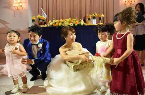 結婚式準備から友人にはアドバイスをもらったり、手づくりアイテムをプレゼントしてもらったりと、ほんとうに感謝しています。パーティー中にも友人の子供達へ御礼をプレゼントし、一緒に写真を撮ったりをアットームに過ごせました♪