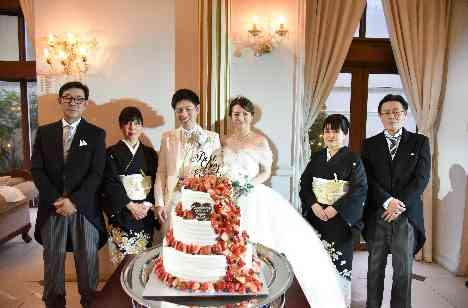 これまで育ててくれたご両親とのお写真を撮りたいと希望していたお二人。お打ち合わせで担当プランナーと決めた豪華なウェディングケーキと共に撮影することができました。新たな夫婦の誕生に親御様の感動を抑えきれないご様子でした。
