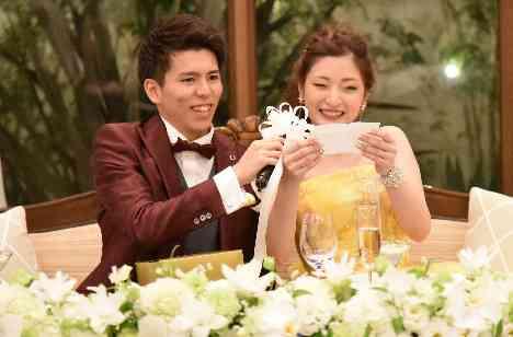 お色直し後、ゲスト様のサプライズをお二人がご用意!ゲスト様全員の名前が入っているボックスから一枚引き、当たったゲスト様にサプライズインタビューをしました♪ゲスト様からのお祝いのメッセージをいただき、感極まった新婦様が思わず涙する場面も。