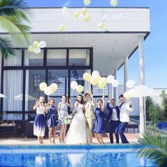 【ガーデンテラス&プール付き貸切邸宅】最大100名着席可能なプールが見えるパーティー会場は海外リゾートを感じさせる圧巻の開放空間◇大階段やテラスからの入場演出やゲストも楽しいゲスト参加型の演出もご用意