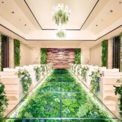 【グリーンバージンロードにひとめぼれ】最新トレンドナチュラルバージンロード。まるで映画のワンシーンのような写真が撮れる、当館自慢のチャペルで入場体験!当日のイメージを確かめよう