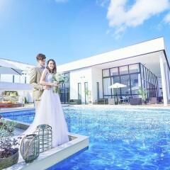 【ガーデンテラス&プール付き貸切邸宅】最大100名着席可能なプールが見えるパーティー会場は海外リゾートを感じさせる圧巻の開放空間◇大階段やテラスからの入場演出やゲストも楽しいゲスト参加型の演出もご用意