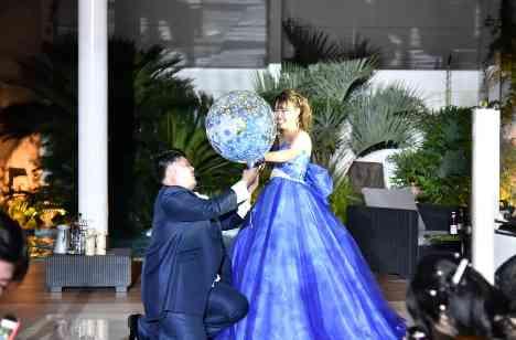 一度中座をされ、こだわりのカラードレスにチェンジ!ドレスの色当てクイズを行い大盛り上がりなシーンとなりました!色当てクイズの正解発表ではバルーンクラッカーを行い、ゲストの皆様にもサプライズ!ご披露宴の後半を彩る一大イベントとなり、ゲストのシャッターチャンス満載の記憶に残るシーンとなりました!お二人も楽しみにされていた再入場も大成功に結びました。