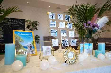 まずゲストの皆様がご来館された際にお待ちいただく お待合ロビー。12月のご結婚式にぴったりのクリスマスツリーとお二人オリジナルのウェルカムボードやグッツをおいてゲストの皆様をお迎えします! 当館の貸し切りを生かしたお二人らしい空間にしていただきゲストのみな様もお楽しみいただきながらお待ちいただくことが出来ました!