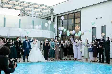 挙式の後に行うプールサイドでのアフターセレモニーで、カラフルなバルーンが配られました! このバルーンを司会者の合図で一斉にプールに投げ入れると、魔法がかかったように風船がふわふわと空へ舞い上がっていくという、バルーンを使用した素敵な演出が行われました♪ おふたりのパーティーイメージに合わせたお色味でおふたりやゲストの皆様の雰囲気にもピッタリでした!