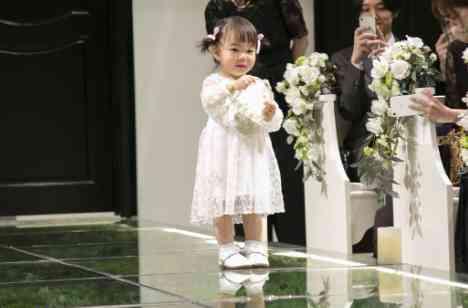 指輪の交換時に扉が開くとかわいいリングガールの登場! おふたりの大切な指輪を落とさないようゆっくりお届け♡カメラマンなみにゲストの皆様はカメラを構えてお写真もばっちり!緊張して進むリングガールをおふたりの元へ無事に届けてくれました♡挙式ではゲストの皆様にも参加していただきおふたりらいしい沢山のイベントがありました!
