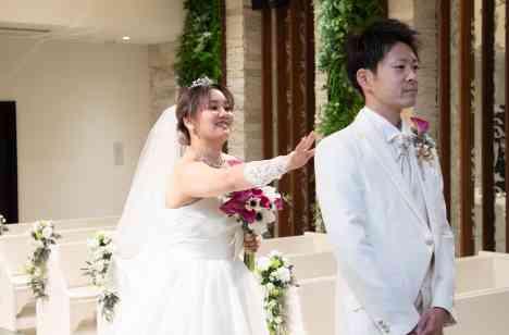 いよいよおふたりのご結婚式がスタートします。 その前にチャペルでファーストミートを行いました。 この時のために結婚式本番までドレスの打合せも一緒に行わず、楽しみにされていました。 お互いの姿を見ると自然と笑みがこぼれており、なんとそのあと新婦様から新郎様へお手紙を渡すサプライズが! これからおふたりで歩く未来に向けて、新婦様からこれまでの感謝を伝えて挙式がスタートしました。