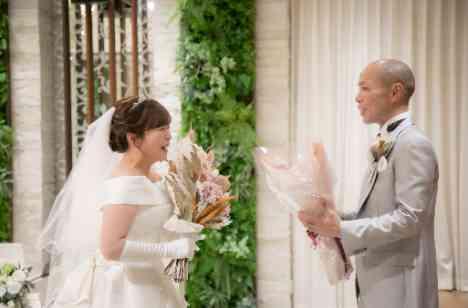 チャペルにてファーストミートを行ったお二人。ファーストミートの演出により、新郎新婦様の気持ちが高まり感動的なシーンから結婚式を始まります。純白のドレスを身にまとった新婦様を目にして感動する新郎様とはにかむ新婦様の表情からは、一緒になれる幸せを再確認する素敵なお時間となったことが伝わってきます。また、新郎様が振り向くとその手にはピンクにバラが!新婦様は涙が止まらないくらいに感動されていました。