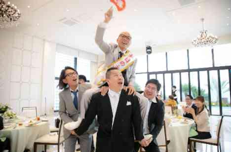 ご新郎様のご友人の方々からのご余興で「バンザイ」をカラオケで大熱唱!!最初の出だしからインパクトがあり明るいアップテンポの曲なので、会場内は大盛り上がり。結びにはご新郎様を胴上げまでしていただき、新婦様も楽しそうに見ていらっしゃいました!親御様や新婦様側のゲスト様が、新郎様の無邪気な一面を知れる貴重な機会となりました。