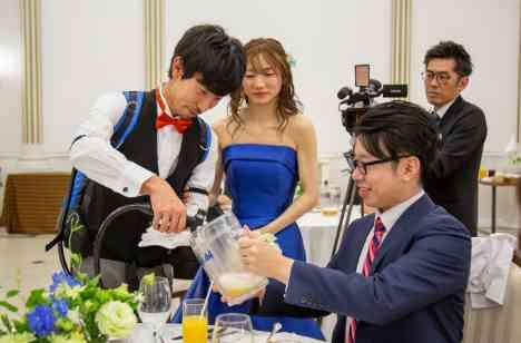 打合せ当初から新郎様よりご希望頂いていたビールサーブを実施!ビールサーバーを新郎が背負って、お客さんにビールを注ぎに行きます。お客さんと楽しくおしゃべりしたり、一緒に写真を撮ったりすることができます。新婦様は新郎様と一緒に歩きながら、お客さんに挨拶したり、おつまみなどを配ったりします。形式ばらないアットホームなパーティーをご希望の新郎新婦様にぴったりです。