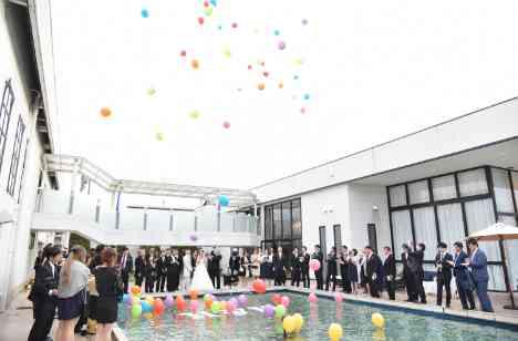 ライヴラリーでご決定頂いた際から「バルーンリリースはやりたい!」と豪語するお二人!当日の天気にも恵まれ無事決行☆!パーティー会場に隣接するプールガーデンでゲスト全員で行ったバルーンリリースでお二人の夢も叶い素敵な一時を過ごされました♪