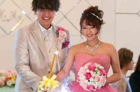 可愛らしいピンクを基調としたドレスとタキシードでお色直しをしたお二人。ゲストのテーブルごとに花火演出のあるキャンドルを置きました!!共同作業でキャンドルを灯し、会場全体が幻想的な雰囲気となりました!!