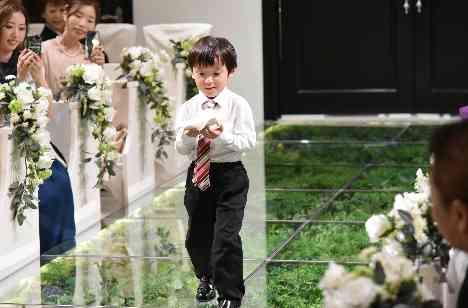 新郎新婦の素敵な挙式には、とっても可愛らしいリングボーイがお手伝い!!お二人の幸せを祝福するために一生懸命頑張ってくれました♪チャペル内では微笑ましい雰囲気になり、人前式ならではのアットホームウエディングになりました!
