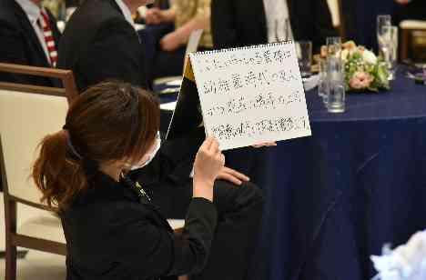 披露宴会場におふたりが入場後、新郎様からゲストへ向けたスピーチがはじまると担当のウェディングプランナーがカンペをもって登場!!新郎様のスピーチがスムーズに行えるようウェディングプランナーもサポートし、無事にゲストへの感謝の気持ちを伝えられえることができました★ウェディングプランナーのサポートもあり、おふたりの緊張もほぐれました♡