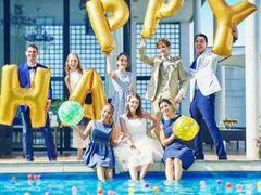 プールサイドではバルーンリリースなどのアフターセレモニーや、ソファを並べてデザートビュッフェやフォトスポットなど、自由でリラックスしたパーティを愉しめる空間となっています。