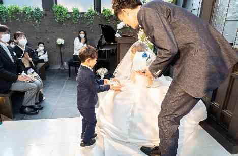 挙式のこだわりポイントはゲストと皆で明るい雰囲気を創る事! 甥っ子にリングボーイをお願いしたり、誰でも気兼ねなく参加出来るよう「ブーケトス」ではなく「ブーケプルズ」にして皆で楽しめる空間をイメージしました。 また、新郎から新婦への日頃の感謝を綴った手紙など、あえて感動シーンを挙式中に取り入れたのもこだわりポイントの一つです!