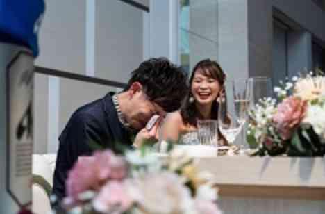 披露宴でのこだわりは「笑顔あり涙あり」の盛り上がる時間構成! お色直し後に「ビールサーブ」を各テーブル毎に行い、ゲスト皆としっかり会話を楽しめるタイミングを創りました! また、新婦から新郎への「サプライズムービー」として新郎が絶対に呼びたかったが呼ぶことが叶わなかったお祖母様からのメッセージを大画面で上映。 心温まるシーンとなり新郎は勿論、会場中がまさに「笑顔と涙」の素敵な空間になりました。