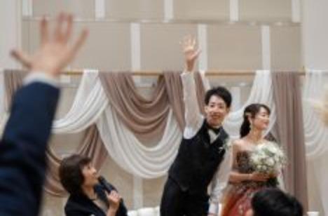 涙なし!笑顔で終われる結婚式を目指しました。 ゲストの皆様が退屈にならないように全員参加の【お菓子撒き】や【じゃんけん大会】などみんなで盛り上がるよう進行を工夫しました。 お色直し入場時はゲストの皆様にペンライトを振ってもらいましたが階段上から見る景色はとても綺麗でした! 大変思い出に残る演出でした。