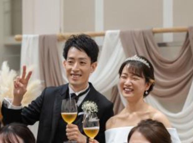 涙なし!笑顔で終われる結婚式を目指しました。 ゲストの皆様が退屈にならないように全員参加の【お菓子撒き】や【じゃんけん大会】などみんなで盛り上がるよう進行を工夫しました。 お色直し入場時はゲストの皆様にペンライトを振ってもらいましたが階段上から見る景色はとても綺麗でした! 大変思い出に残る演出でした。
